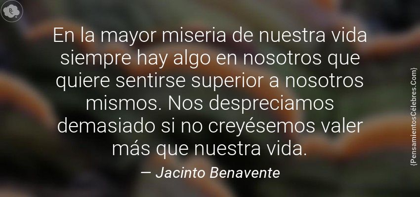 "En la mayor miseria de nuestra vida siempre hay algo en nosotros que quiere sentirse superior a nosotros mismos. Nos despreciamos demasiado si no creyésemos valer más que nuestra vida."