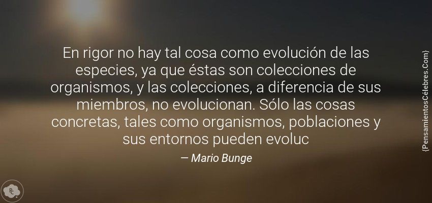 "En rigor no hay tal cosa como evolución de las especies, ya que éstas son colecciones de organismos, y las colecciones, a diferencia de sus miembros, no evolucionan. Sólo las cosas concretas, tales como organismos, poblaciones y sus entornos pueden evoluc"