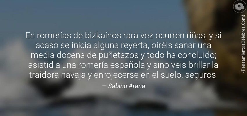 "En romerías de bizkaínos rara vez ocurren riñas, y si acaso se inicia alguna reyerta, oiréis sanar una media docena de puñetazos y todo ha concluido; asistid a una romería española y sino veis brillar la traidora navaja y enrojecerse en el suelo, seguros "