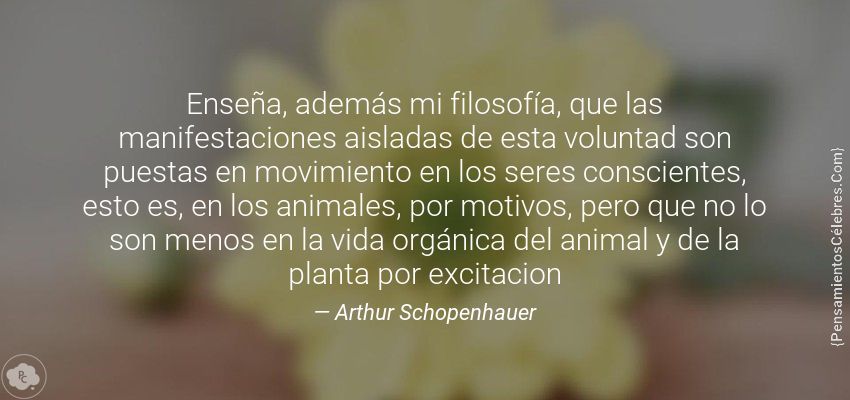 "Enseña, además mi filosofía, que las manifestaciones aisladas de esta voluntad son puestas en movimiento en los seres conscientes, esto es, en los animales, por motivos, pero que no lo son menos en la vida orgánica del animal y de la planta por excitacion"