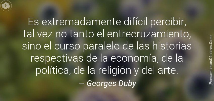 "Es extremadamente difícil percibir, tal vez no tanto el entrecruzamiento, sino el curso paralelo de las historias respectivas de la economía, de la política, de la religión y del arte."