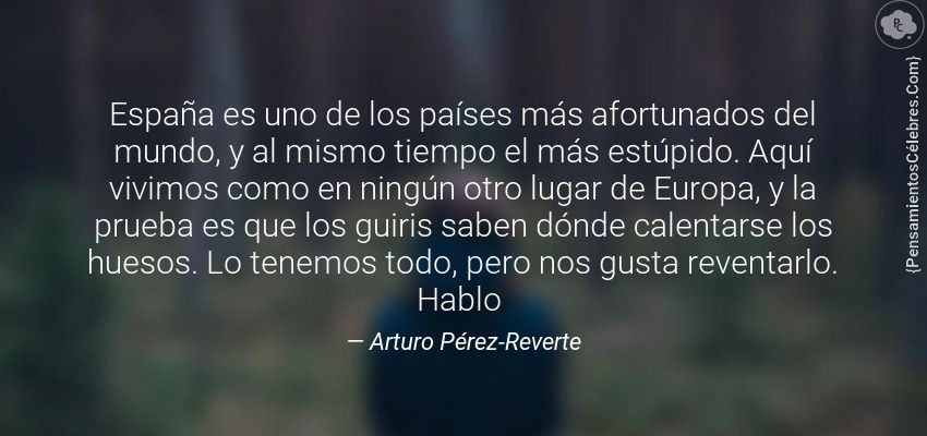 "España es uno de los países más afortunados del mundo, y al mismo tiempo el más estúpido. Aquí vivimos como en ningún otro lugar de Europa, y la prueba es que los guiris saben dónde calentarse los huesos. Lo tenemos todo, pero nos gusta reventarlo. Hablo "