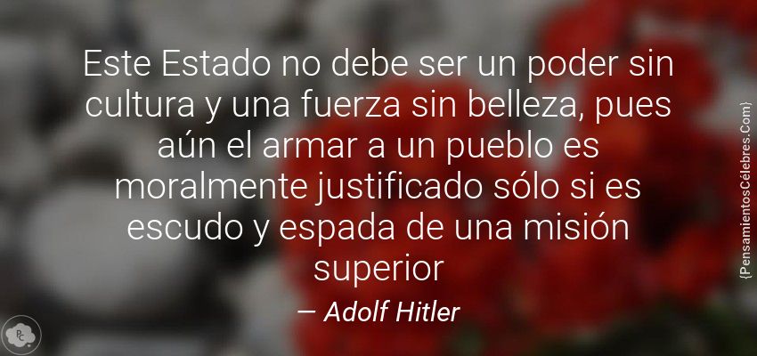 "Este Estado no debe ser un poder sin cultura y una fuerza sin belleza, pues aún el armar a un pueblo es moralmente justificado sólo si es escudo y espada de una misión superior"