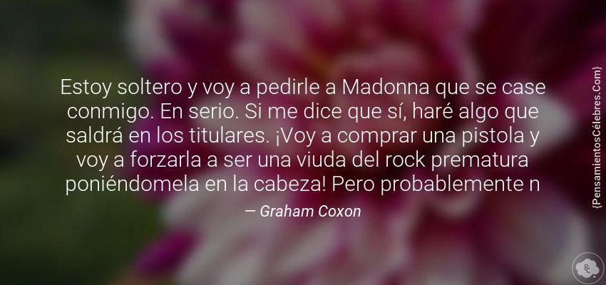 "Estoy soltero y voy a pedirle a Madonna que se case conmigo. En serio. Si me dice que sí, haré algo que saldrá en los titulares. ¡Voy a comprar una pistola y voy a forzarla a ser una viuda del rock prematura poniéndomela en la cabeza! Pero probablemente n"