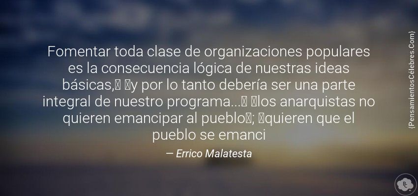 "Fomentar toda clase de organizaciones populares es la consecuencia lógica de nuestras ideas básicas, y por lo tanto debería ser una parte integral de nuestro programa... los anarquistas no quieren emancipar al pueblo; quieren que el pueblo se emanci"