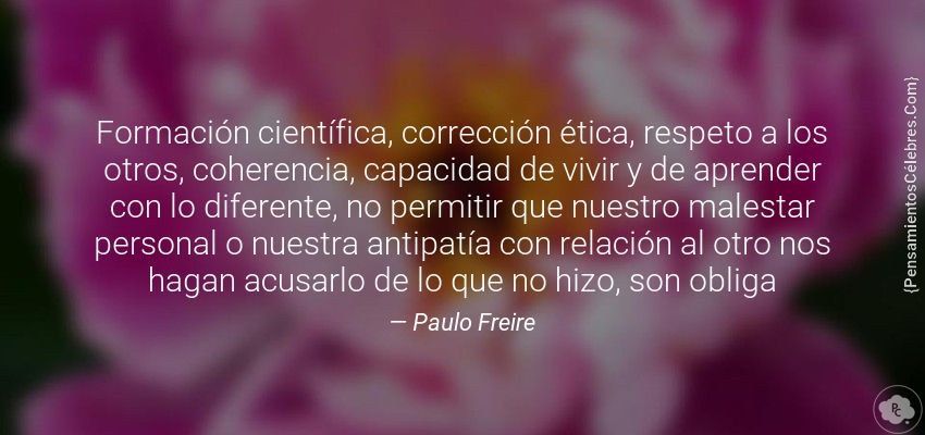 "Formación científica, corrección ética, respeto a los otros, coherencia, capacidad de vivir y de aprender con lo diferente, no permitir que nuestro malestar personal o nuestra antipatía con relación al otro nos hagan acusarlo de lo que no hizo, son obliga"