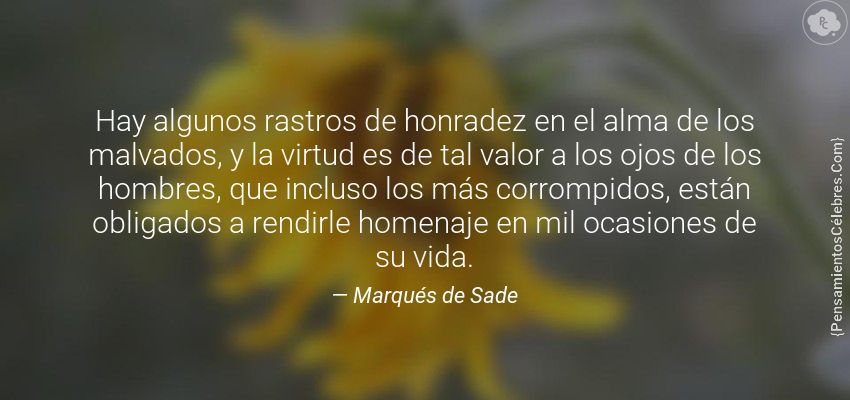 "Hay algunos rastros de honradez en el alma de los malvados, y la virtud es de tal valor a los ojos de los hombres, que incluso los más corrompidos, están obligados a rendirle homenaje en mil ocasiones de su vida."