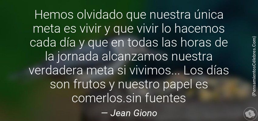 "Hemos olvidado que nuestra única meta es vivir y que vivir lo hacemos cada día y que en todas las horas de la jornada alcanzamos nuestra verdadera meta si vivimos... Los días son frutos y nuestro papel es comerlos.sin fuentes"