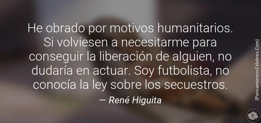 "He obrado por motivos humanitarios. Si volviesen a necesitarme para conseguir la liberación de alguien, no dudaría en actuar. Soy futbolista, no conocía la ley sobre los secuestros."