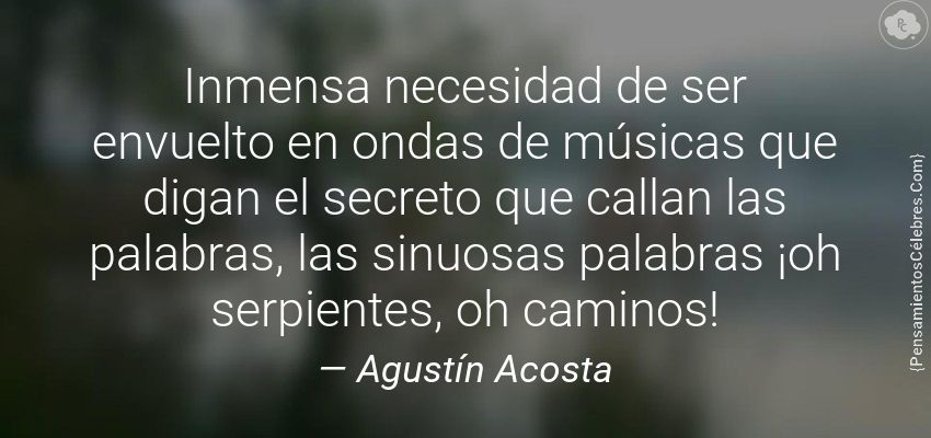 "Inmensa necesidad de ser envuelto en ondas de músicas que digan el secreto que callan las palabras, las sinuosas palabras ¡oh serpientes, oh caminos!"