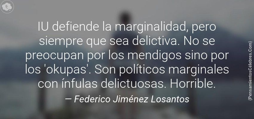 "IU defiende la marginalidad, pero siempre que sea delictiva. No se preocupan por los mendigos sino por los 'okupas'. Son políticos marginales con ínfulas delictuosas. Horrible."