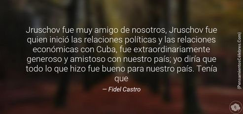 Jruschov fue muy amigo de nosotros, Jruschov fue quien inició las relaciones políticas y las relaciones económicas con Cuba, fue extraordinariamente generoso y amistoso con nuestro país; yo diría que todo lo que hizo fue bueno para nuestro país. Tenía que