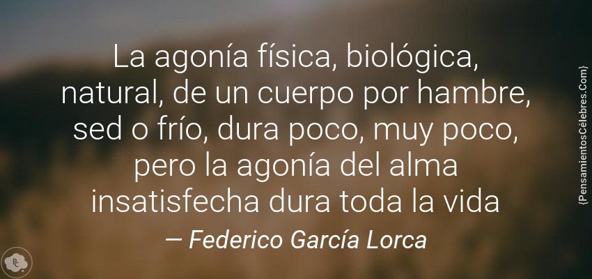 "La agonía física, biológica, natural, de un cuerpo por hambre, sed o frío, dura poco, muy poco, pero la agonía del alma insatisfecha dura toda la vida"