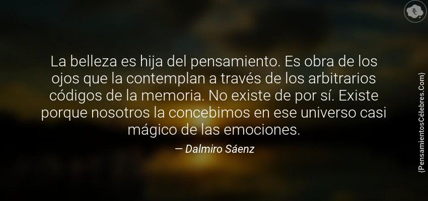 "La belleza es hija del pensamiento. Es obra de los ojos que la contemplan a través de los arbitrarios códigos de la memoria. No existe de por sí. Existe porque nosotros la concebimos en ese universo casi mágico de las emociones."