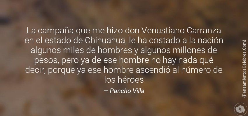 "La campaña que me hizo don Venustiano Carranza en el estado de Chihuahua, le ha costado a la nación algunos miles de hombres y algunos millones de pesos, pero ya de ese hombre no hay nada qué decir, porque ya ese hombre ascendió al número de los héroes"