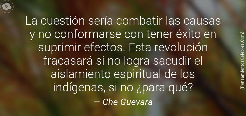 "La cuestión sería combatir las causas y no conformarse con tener éxito en suprimir efectos. Esta revolución fracasará si no logra sacudir el aislamiento espiritual de los indígenas, si no ¿para qué?"