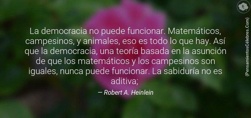 "La democracia no puede funcionar. Matemáticos, campesinos, y animales, eso es todo lo que hay. Así que la democracia, una teoría basada en la asunción de que los matemáticos y los campesinos son iguales, nunca puede funcionar. La sabiduría no es aditiva; "