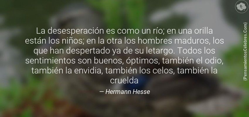 "La desesperación es como un río; en una orilla están los niños; en la otra los hombres maduros, los que han despertado ya de su letargo. Todos los sentimientos son buenos, óptimos, también el odio, también la envidia, también los celos, también la cruelda"