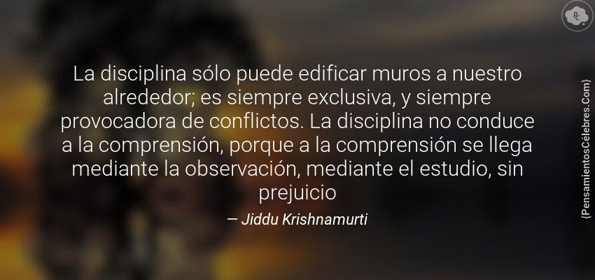 "La disciplina sólo puede edificar muros a nuestro alrededor; es siempre exclusiva, y siempre provocadora de conflictos. La disciplina no conduce a la comprensión, porque a la comprensión se llega mediante la observación, mediante el estudio, sin prejuicio"