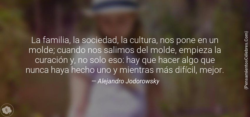 "La familia, la sociedad, la cultura, nos pone en un molde; cuando nos salimos del molde, empieza la curación y, no solo eso: hay que hacer algo que nunca haya hecho uno y mientras más difícil, mejor."