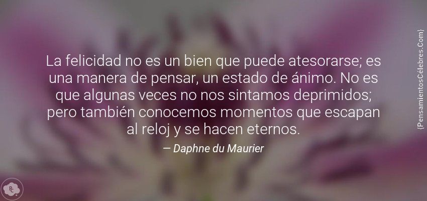 "La felicidad no es un bien que puede atesorarse; es una manera de pensar, un estado de ánimo. No es que algunas veces no nos sintamos deprimidos; pero también conocemos momentos que escapan al reloj y se hacen eternos."