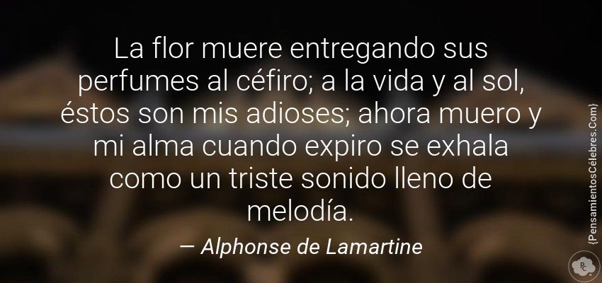 "La flor muere entregando sus perfumes al céfiro; a la vida y al sol, éstos son mis adioses; ahora muero y mi alma cuando expiro se exhala como un triste sonido lleno de melodía."