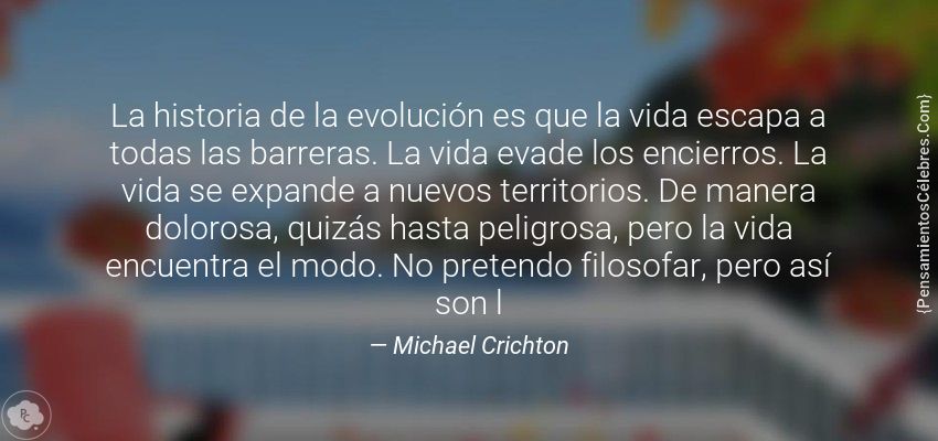 "La historia de la evolución es que la vida escapa a todas las barreras. La vida evade los encierros. La vida se expande a nuevos territorios. De manera dolorosa, quizás hasta peligrosa, pero la vida encuentra el modo. No pretendo filosofar, pero así son l"