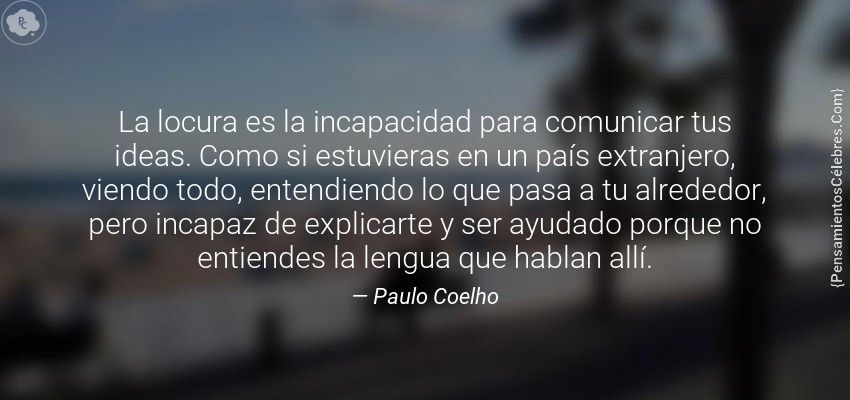 "La locura es la incapacidad para comunicar tus ideas. Como si estuvieras en un país extranjero, viendo todo, entendiendo lo que pasa a tu alrededor, pero incapaz de explicarte y ser ayudado porque no entiendes la lengua que hablan allí."