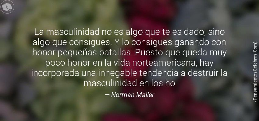"La masculinidad no es algo que te es dado, sino algo que consigues. Y lo consigues ganando con honor pequeñas batallas. Puesto que queda muy poco honor en la vida norteamericana, hay incorporada una innegable tendencia a destruir la masculinidad en los ho"