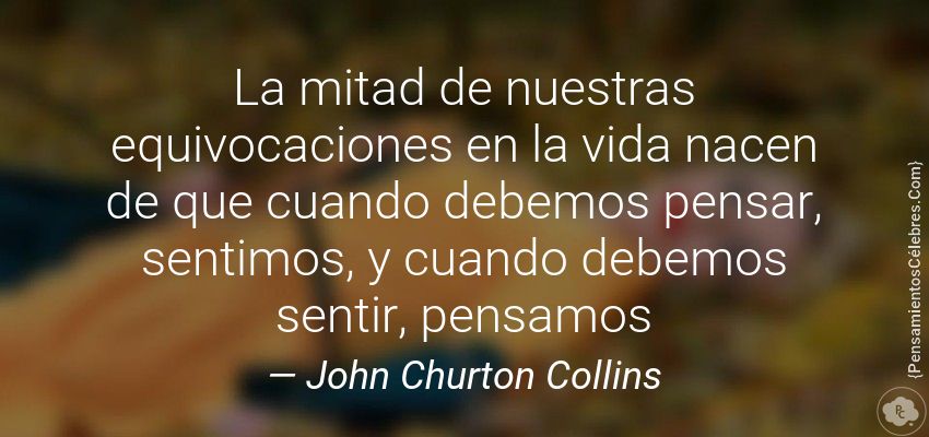 "La mitad de nuestras equivocaciones en la vida nacen de que cuando debemos pensar, sentimos, y cuando debemos sentir, pensamos"