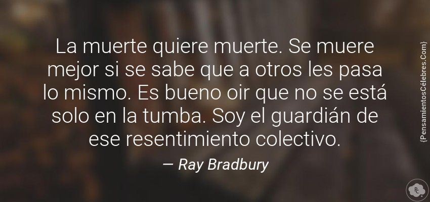 "La muerte quiere muerte. Se muere mejor si se sabe que a otros les pasa lo mismo. Es bueno oir que no se está solo en la tumba. Soy el guardián de ese resentimiento colectivo."