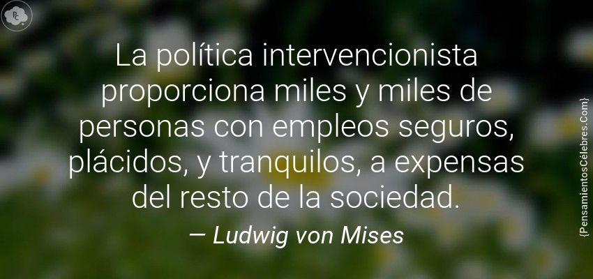 "La política intervencionista proporciona miles y miles de personas con empleos seguros, plácidos, y tranquilos, a expensas del resto de la sociedad."
