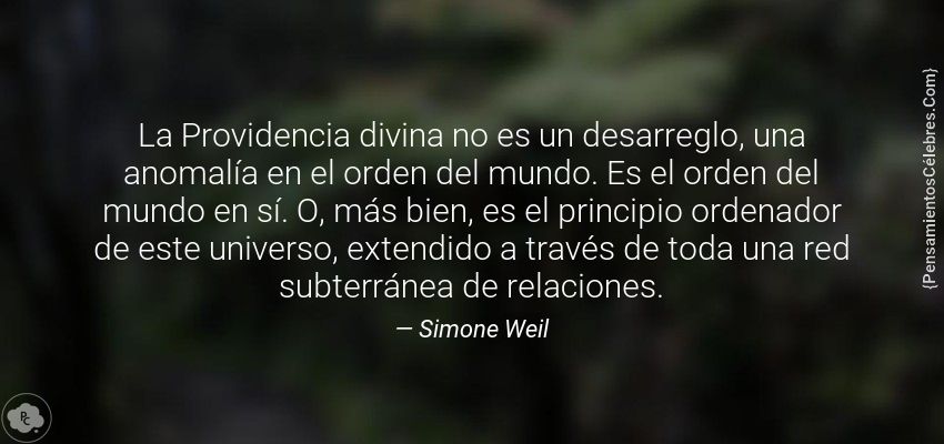 "La Providencia divina no es un desarreglo, una anomalía en el orden del mundo. Es el orden del mundo en sí. O, más bien, es el principio ordenador de este universo, extendido a través de toda una red subterránea de relaciones."