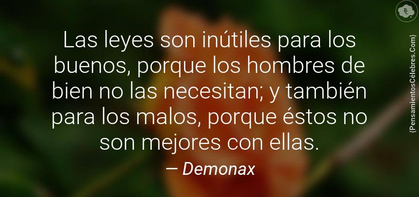 "Las leyes son inútiles para los buenos, porque los hombres de bien no las necesitan; y también para los malos, porque éstos no son mejores con ellas."
