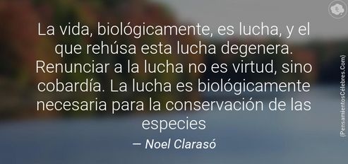 La vida, biológicamente, es lucha, y el que rehúsa esta lucha degenera. Renunciar a la lucha no es virtud, sino cobardía. La lucha es biológicamente necesaria para la conservación de las especies
