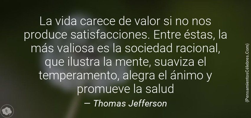 "La vida carece de valor si no nos produce satisfacciones. Entre éstas, la más valiosa es la sociedad racional, que ilustra la mente, suaviza el temperamento, alegra el ánimo y promueve la salud"