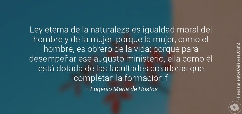"Ley eterna de la naturaleza es igualdad moral del hombre y de la mujer, porque la mujer, como el hombre, es obrero de la vida; porque para desempeñar ese augusto ministerio, ella como él está dotada de las facultades creadoras que completan la formación f"