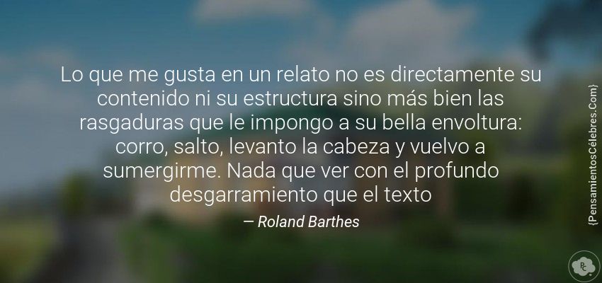"Lo que me gusta en un relato no es directamente su contenido ni su estructura sino más bien las rasgaduras que le impongo a su bella envoltura: corro, salto, levanto la cabeza y vuelvo a sumergirme. Nada que ver con el profundo desgarramiento que el texto"