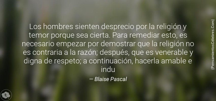 "Los hombres sienten desprecio por la religión y temor porque sea cierta. Para remediar esto, es necesario empezar por demostrar que la religión no es contraria a la razón; después, que es venerable y digna de respeto; a continuación, hacerla amable e indu"