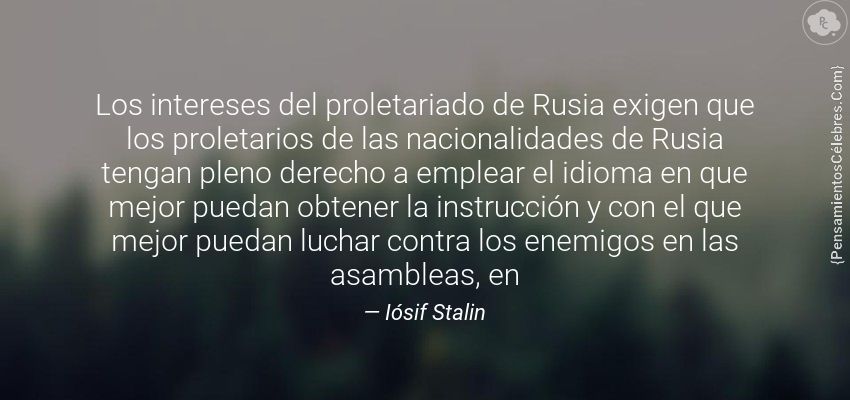 "Los intereses del proletariado de Rusia exigen que los proletarios de las nacionalidades de Rusia tengan pleno derecho a emplear el idioma en que mejor puedan obtener la instrucción y con el que mejor puedan luchar contra los enemigos en las asambleas, en"