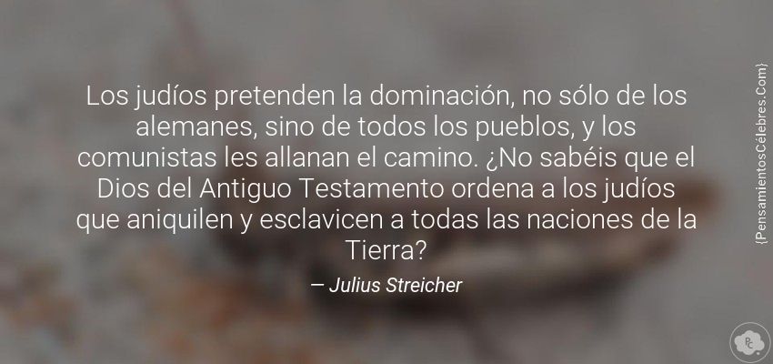 "Los judíos pretenden la dominación, no sólo de los alemanes, sino de todos los pueblos, y los comunistas les allanan el camino. ¿No sabéis que el Dios del Antiguo Testamento ordena a los judíos que aniquilen y esclavicen a todas las naciones de la Tierra?"