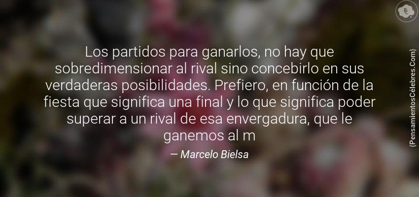 "Los partidos para ganarlos, no hay que sobredimensionar al rival sino concebirlo en sus verdaderas posibilidades. Prefiero, en función de la fiesta que significa una final y lo que significa poder superar a un rival de esa envergadura, que le ganemos al m"