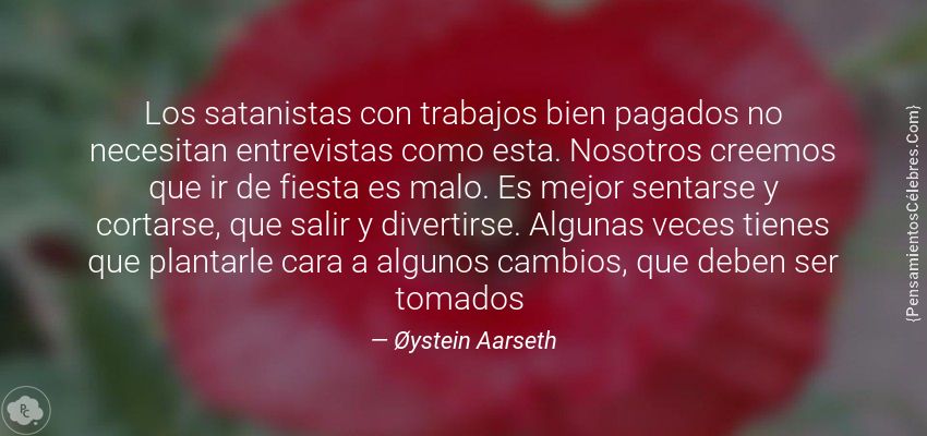 "Los satanistas con trabajos bien pagados no necesitan entrevistas como esta. Nosotros creemos que ir de fiesta es malo. Es mejor sentarse y cortarse, que salir y divertirse. Algunas veces tienes que plantarle cara a algunos cambios, que deben ser tomados "