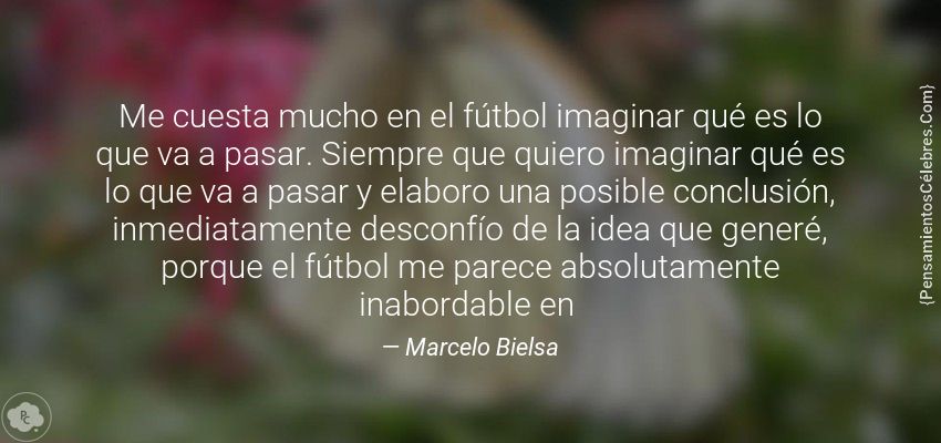 "Me cuesta mucho en el fútbol imaginar qué es lo que va a pasar. Siempre que quiero imaginar qué es lo que va a pasar y elaboro una posible conclusión, inmediatamente desconfío de la idea que generé, porque el fútbol me parece absolutamente inabordable en "