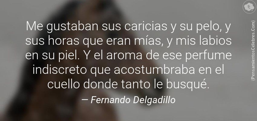 "Me gustaban sus caricias y su pelo, y sus horas que eran mías, y mis labios en su piel. Y el aroma de ese perfume indiscreto que acostumbraba en el cuello donde tanto le busqué."