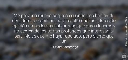 Me provoca mucha sorpresa cuando nos hablan de ser líderes de opinión, pero resulta que los líderes de opinión no podemos hablar más que puras leseras y no acerca de los temas profundos que interesan al país. No es que me haya rebelado, pero siento que un
