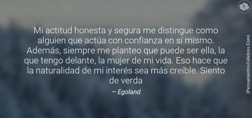"Mi actitud honesta y segura me distingue como alguien que actúa con confianza en sí mismo. Además, siempre me planteo que puede ser ella, la que tengo delante, la mujer de mi vida. Eso hace que la naturalidad de mi interés sea más creíble. Siento de verda"