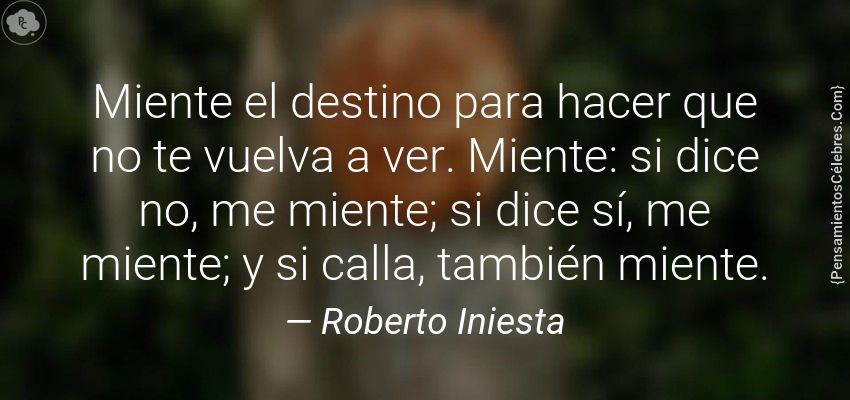 "Miente el destino para hacer que no te vuelva a ver. Miente: si dice no, me miente; si dice sí, me miente; y si calla, también miente."