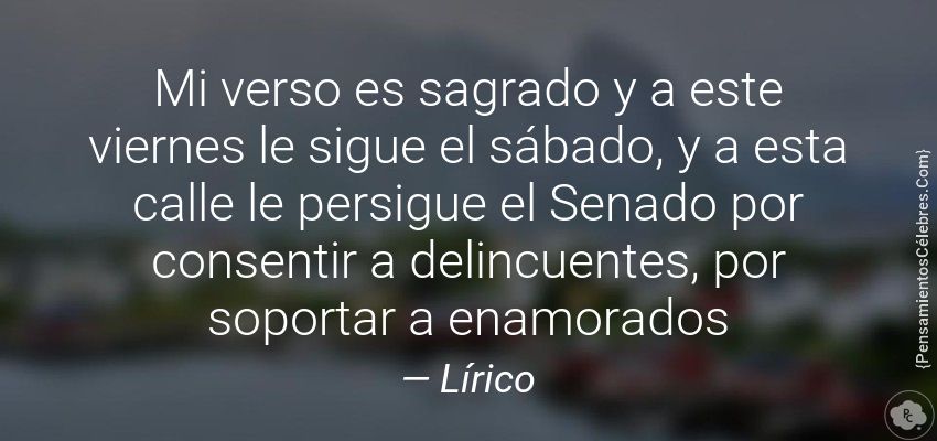 "Mi verso es sagrado y a este viernes le sigue el sábado, y a esta calle le persigue el Senado por consentir a delincuentes, por soportar a enamorados"