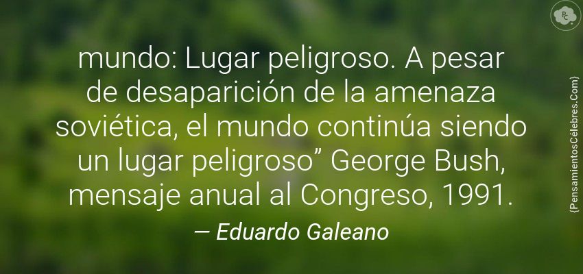 "mundo: Lugar peligroso. A pesar de desaparición de la amenaza soviética, el mundo continúa siendo un lugar peligroso” George Bush, mensaje anual al Congreso, 1991."